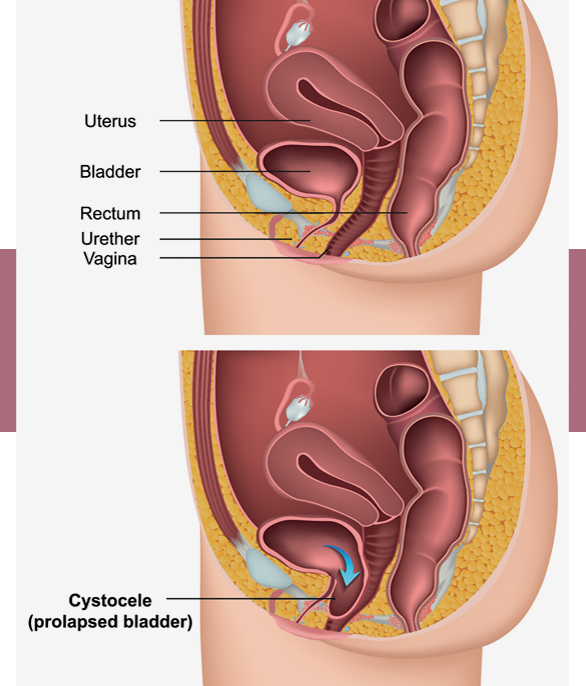 Είναι η πρόπτωση του προσθίου κολπικού τοιχώματος που από πάνω βρίσκεται η ουροδόχος κύστη, με αποτέλεσμα αίσθημα βάρους και πληρότητας στον κόλπο, όπως και ακράτεια ούρων.